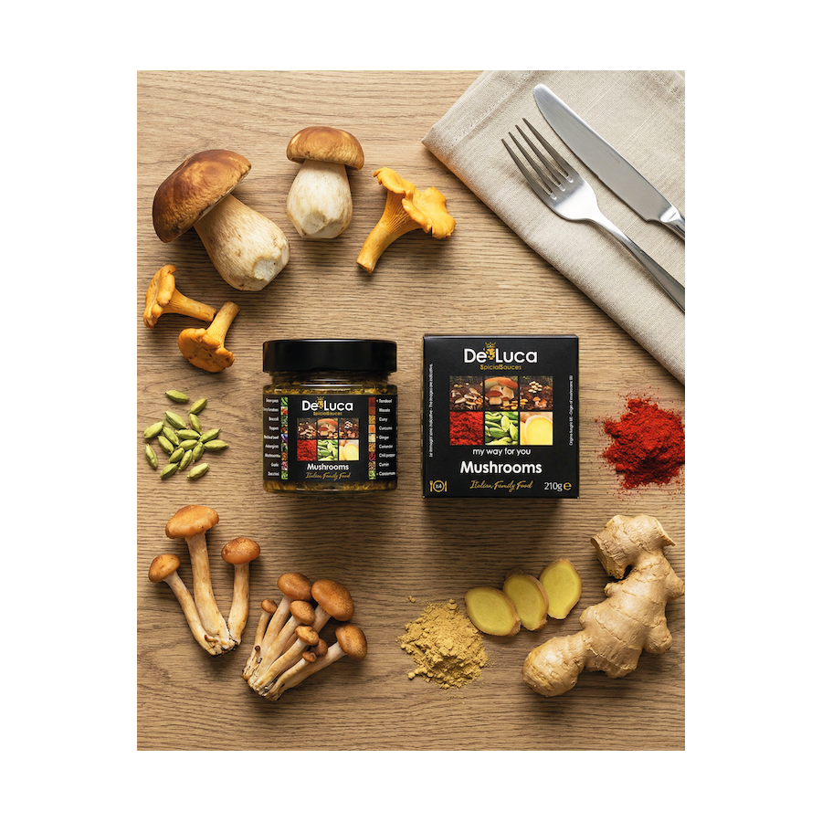 Ingredienti: funghi 54% (porcini, chiodini, finferli), olio extravergine d’oliva 16%, cipolla, carote, prezzemolo, sale, tandoori, zenzero e cardamomo. Senza glutine, additivi e conservanti.